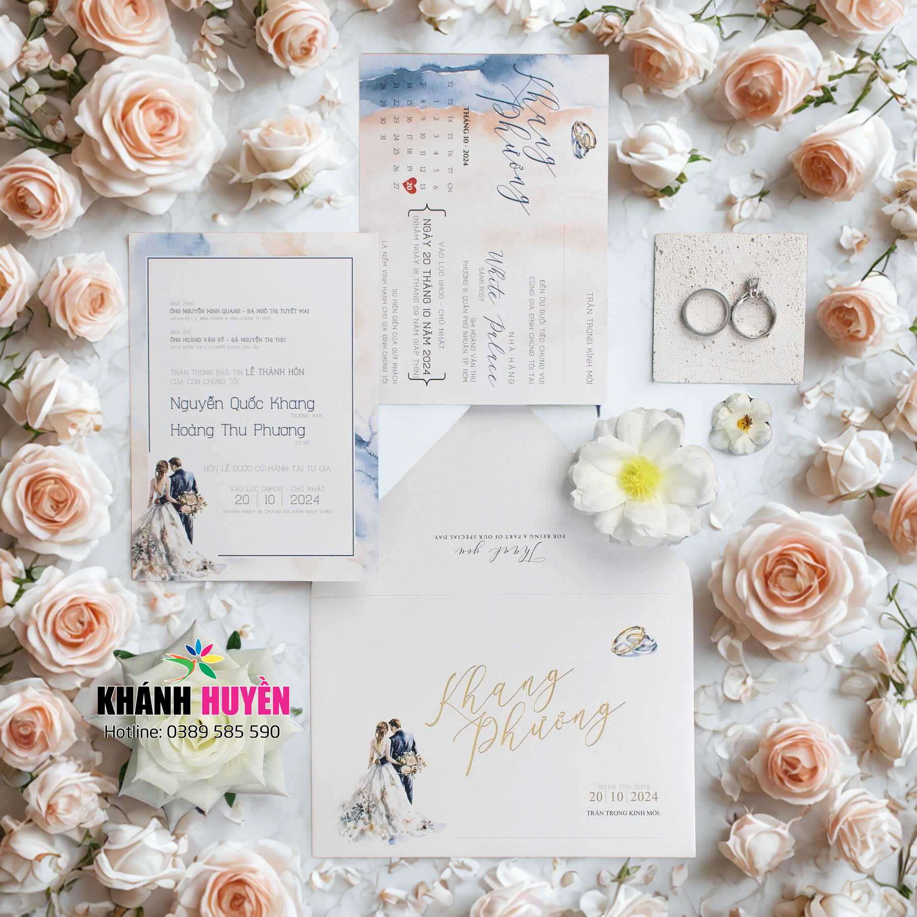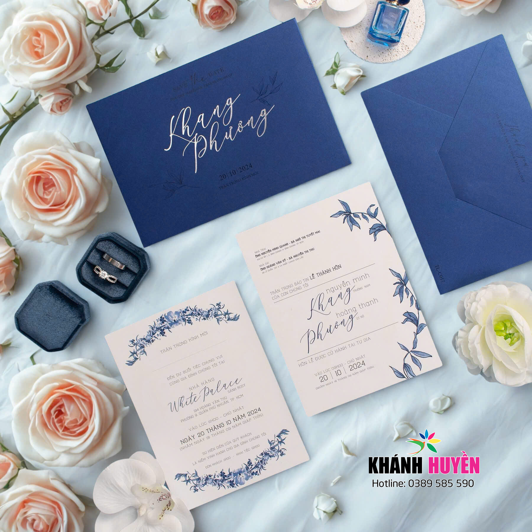Bộ thiệp giấy thơm, ánh nhũ luôn là sự lựa chọn hoàn hảo cho ngày cưới của bạn. Xưởng In Khánh Huyền cập nhật mẫu mã mới nhất giúp khách hàng dễ dàng lựa chọn. Hãy nhắn tin ngay cho Xưởng In Khánh Huyền để nhận mức giá hấp dẫn từ bộ thiệp này nhé!
