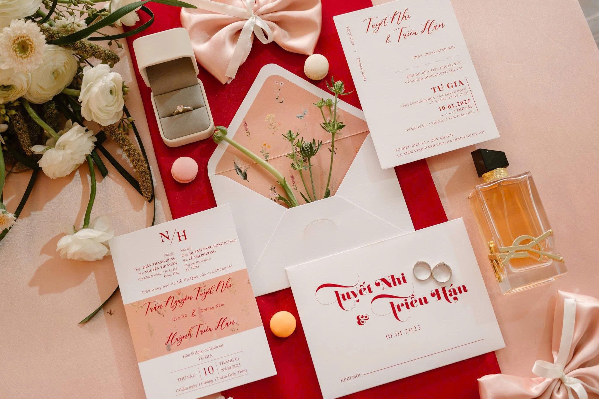 Khi sắc đỏ tượng trưng cho tình yêu cháy bỏng kết hợp cùng nét thiết kế tinh giản, mẫu thiệp Red Blossom ra đời mang theo vẻ đẹp vừa hiện đại, vừa truyền thống — một lựa chọn không thể bỏ qua cho mùa cưới sắp tới.