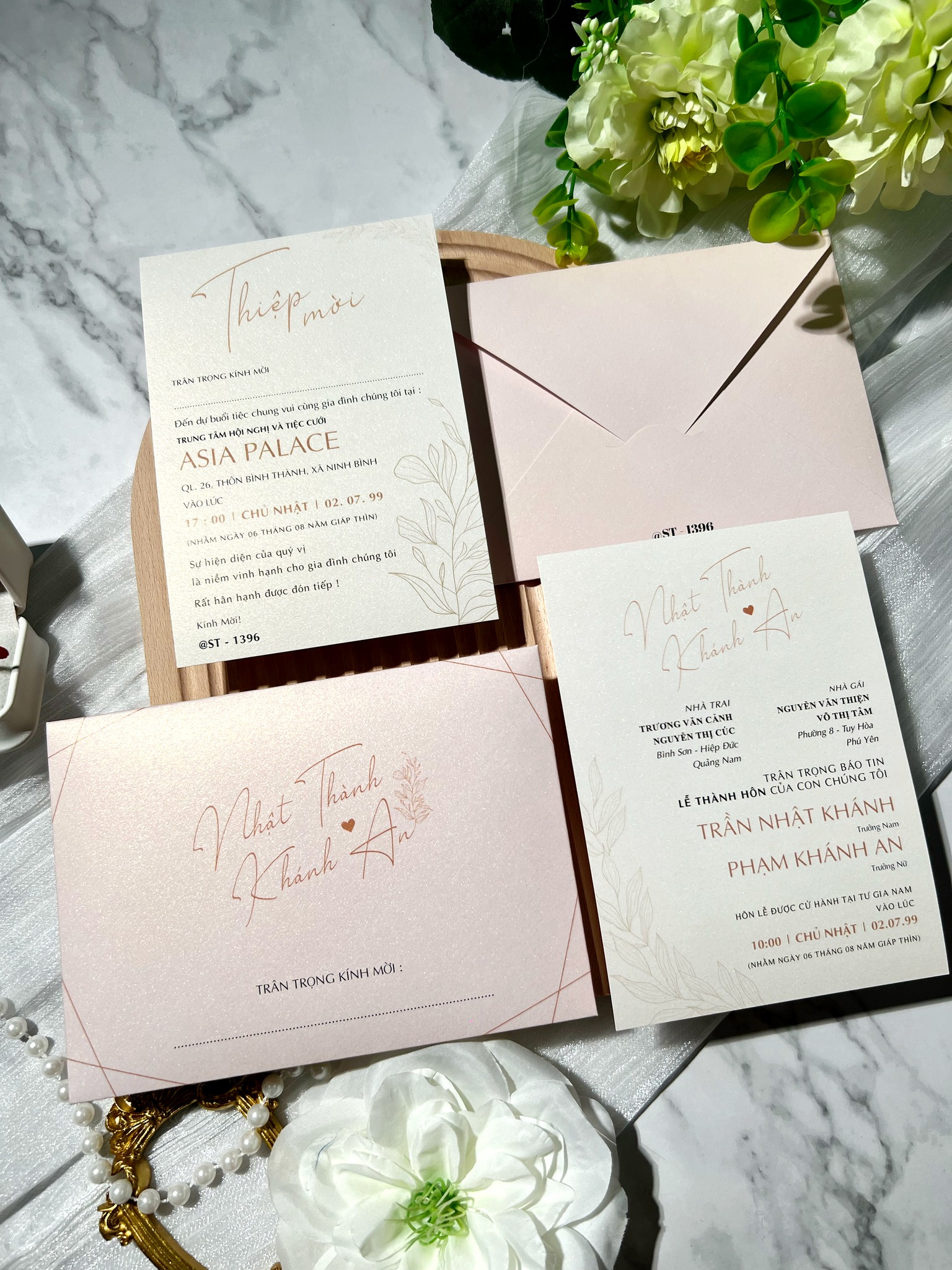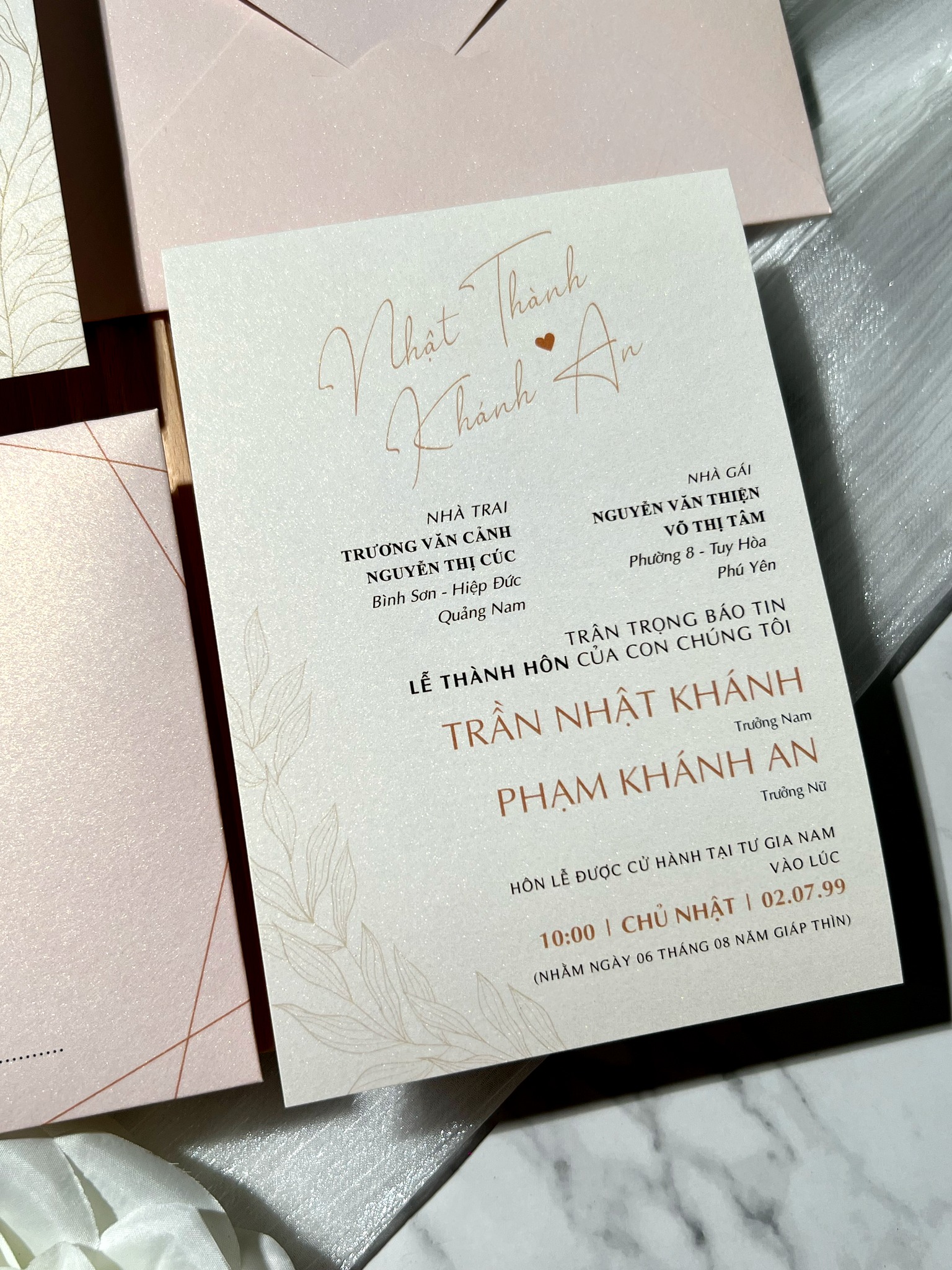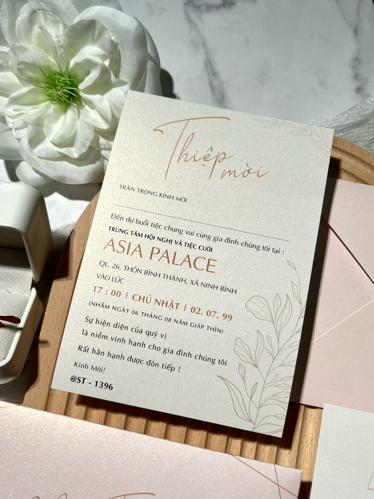THIỆP CƯỚI HOA LÁ NỀN HỒNG TINH TẾ – NÉT DUYÊN DÁNG CHO NGÀY HẠNH PHÚC
