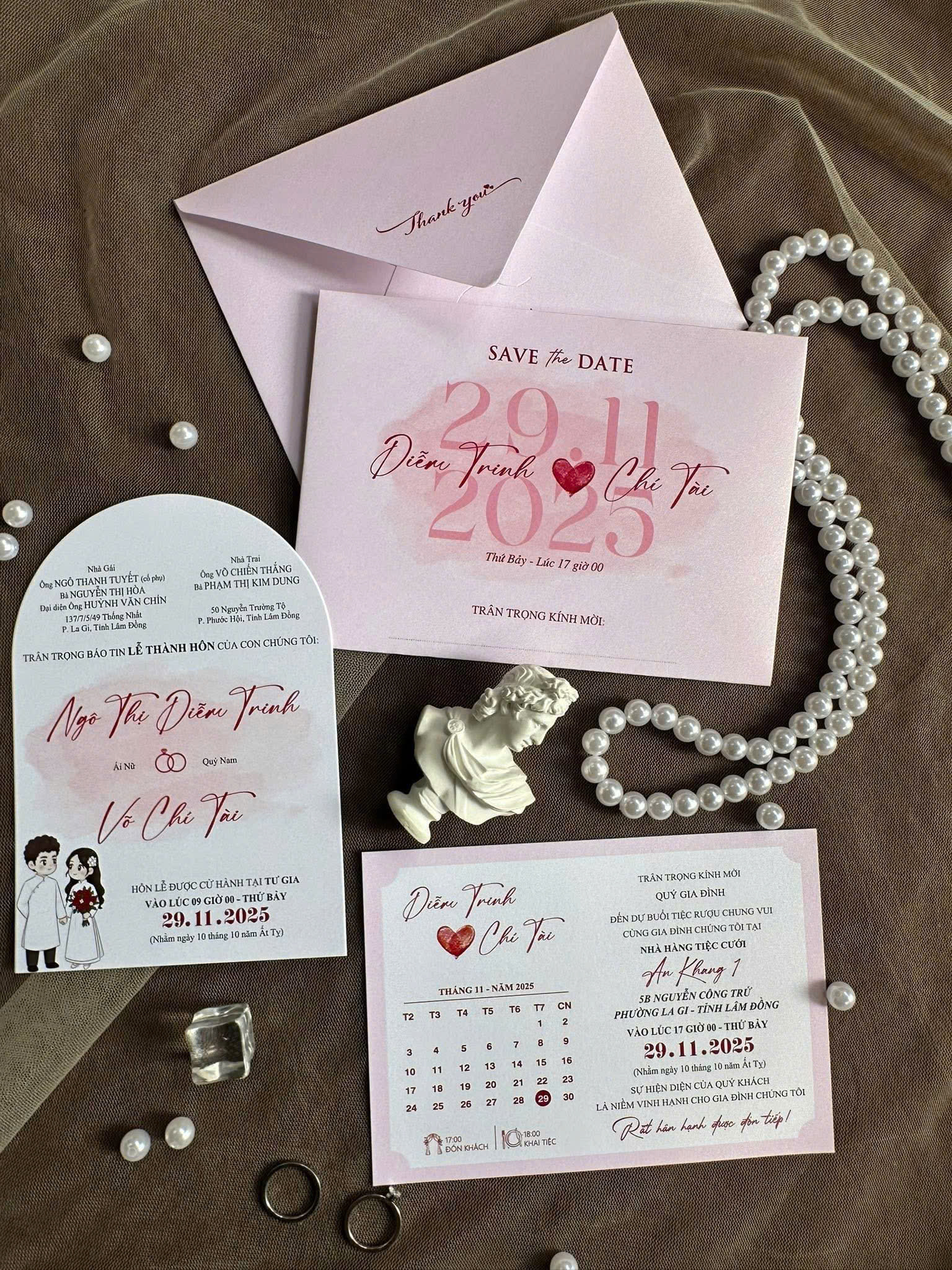 Thiệp được in trên nền giấy mỹ thuật cao cấp, với định lượng chuẩn, mang lại cảm giác chắc chắn và sang trọng khi khách mời cầm trên tay.