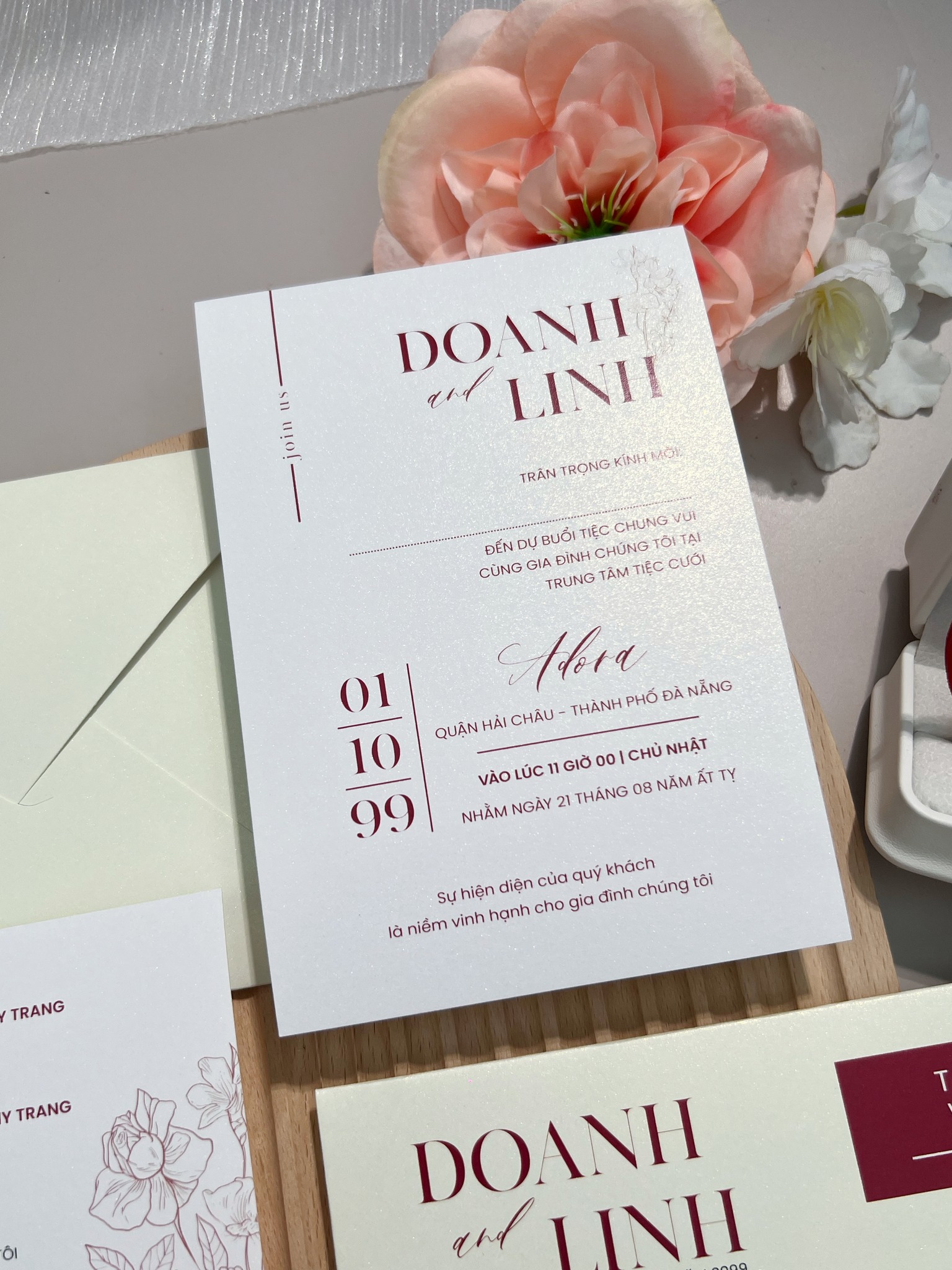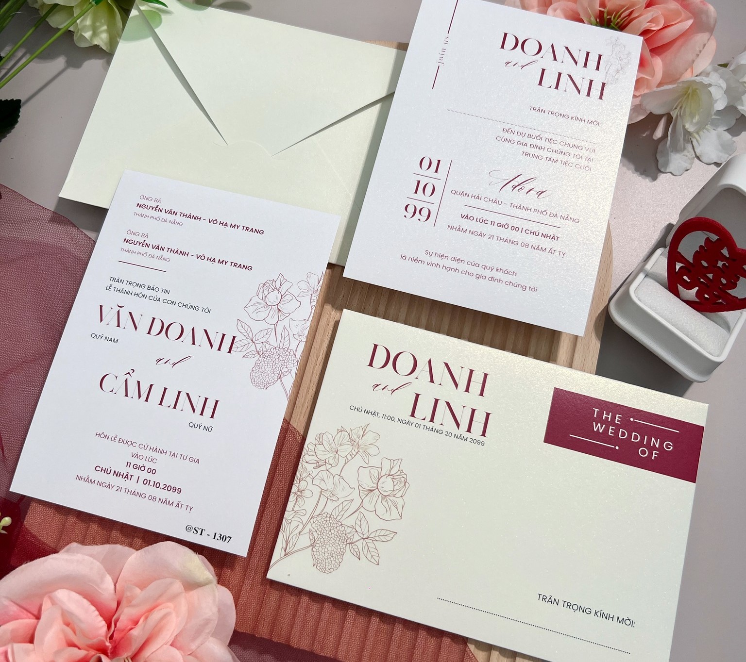 * Miễn phí in nhiều nội dung thiệp theo yêu cầu, giúp mỗi tấm thiệp mang dấu ấn riêng biệt của từng khách mời hoặc nhóm khách mời.