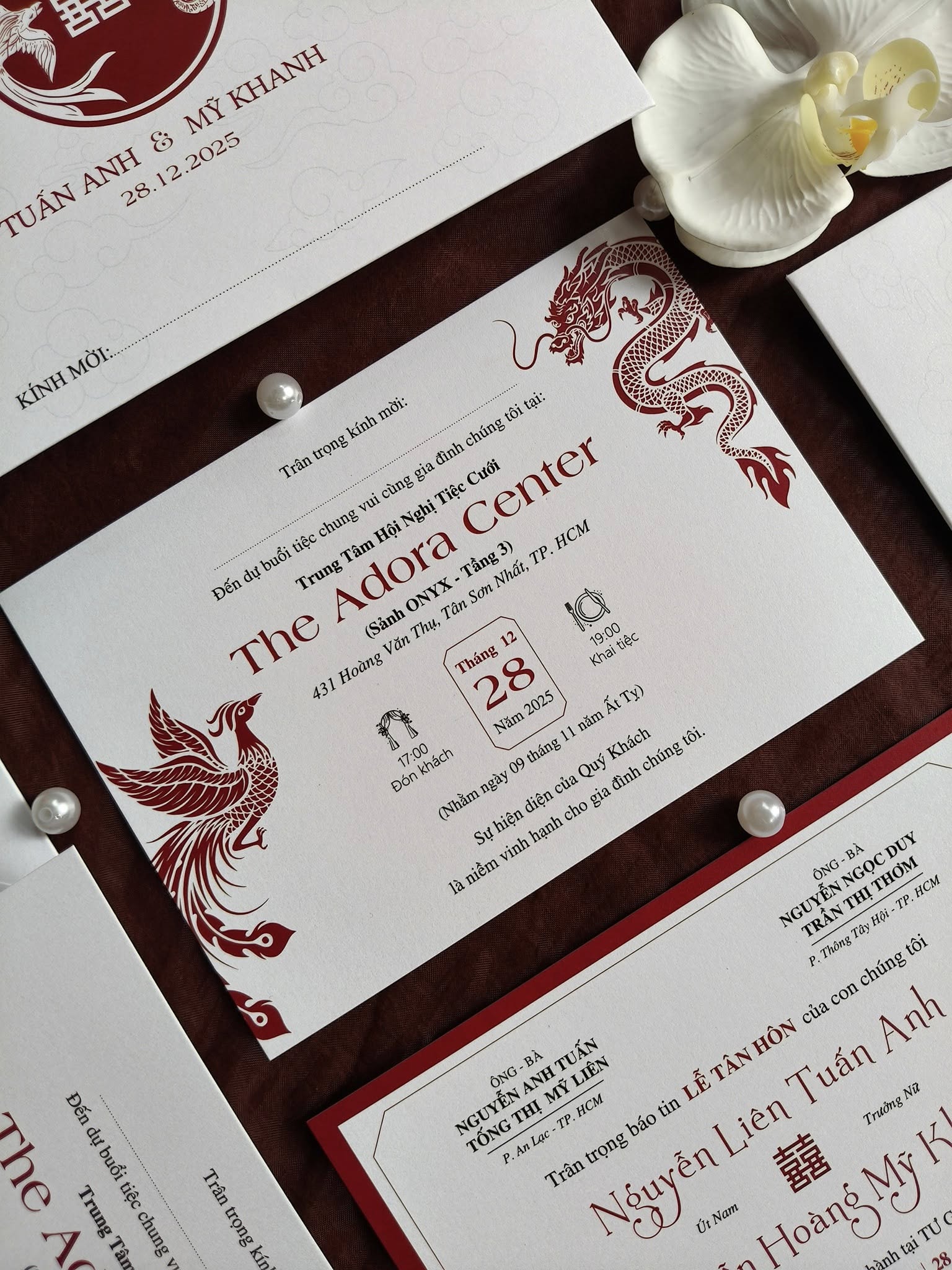 THIỆP CƯỚI SONG HỶ LONG PHỤNG: NÉT ĐẸP CỔ ĐIỂN VÀ SANG TRỌNG