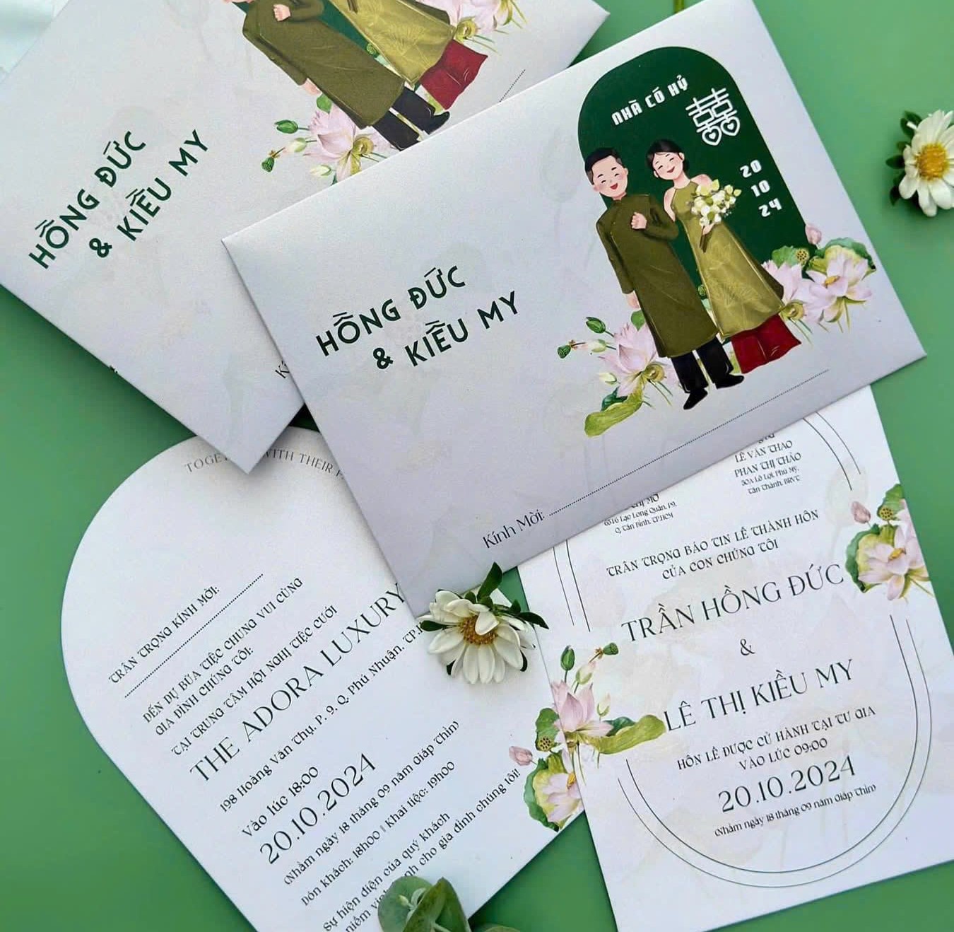 - Hình minh họa Cá nhân hóa: Hình vẽ cô dâu chú rể mặc Áo Dài được thiết kế đồ họa tinh tế, tạo nên sự độc quyền, khác biệt và gắn kết cảm xúc mạnh mẽ với người nhận.