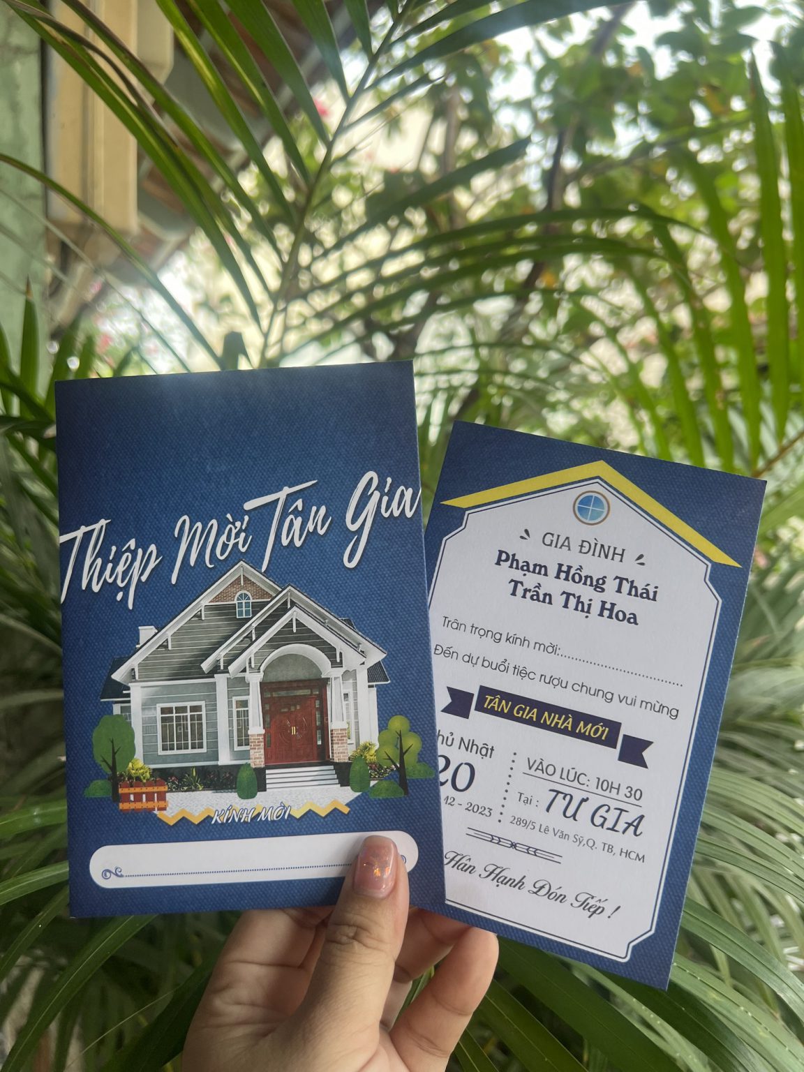 - Mẫu phôi thiệp mời tân gia đỏ offset nhà thái, màu đỏ, xanh dương, Gỗ Kích thước kiểu đứng 10.5 x16cm chất liệu: Giấy kem gân mỹ thuật Bao thư đã dán sẵn, ruột 1 tờ in offset