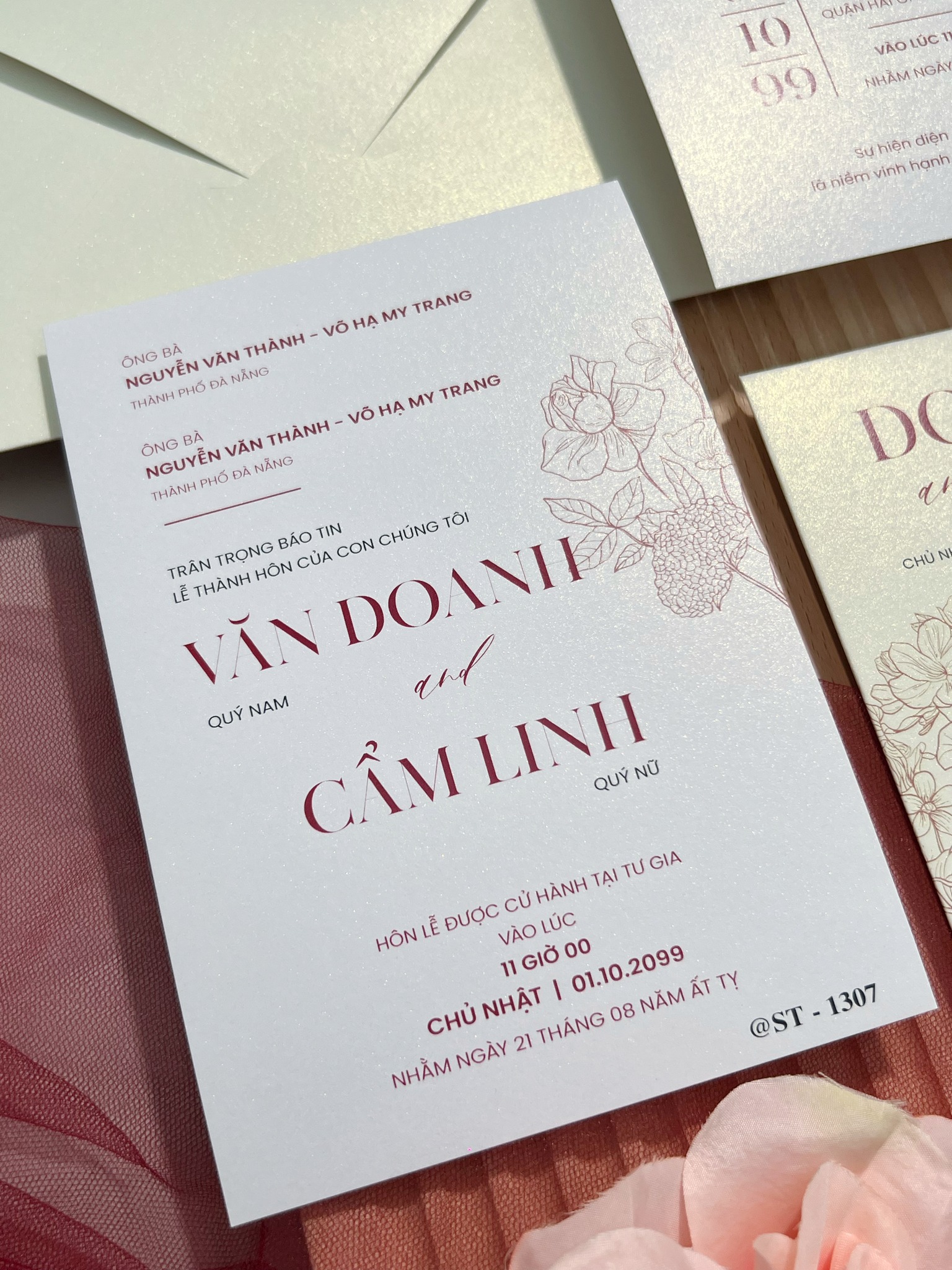 - Thiệp Cưới Đồng Xoài hân hạnh giới thiệu mẫu thiệp cưới Sắc Đỏ Burgundy Thanh Lịch, lựa chọn hoàn hảo cho các cặp đôi yêu thích sự tinh tế, hiện đại và sang trọng. Mẫu thiệp này không chỉ là lời mời mà còn là một tác phẩm nghệ thuật, thể hiện gu thẩm mỹ và cá tính độc đáo của cô dâu chú rể, đánh dấu sự khởi đầu cho một tình yêu vĩnh cửu.