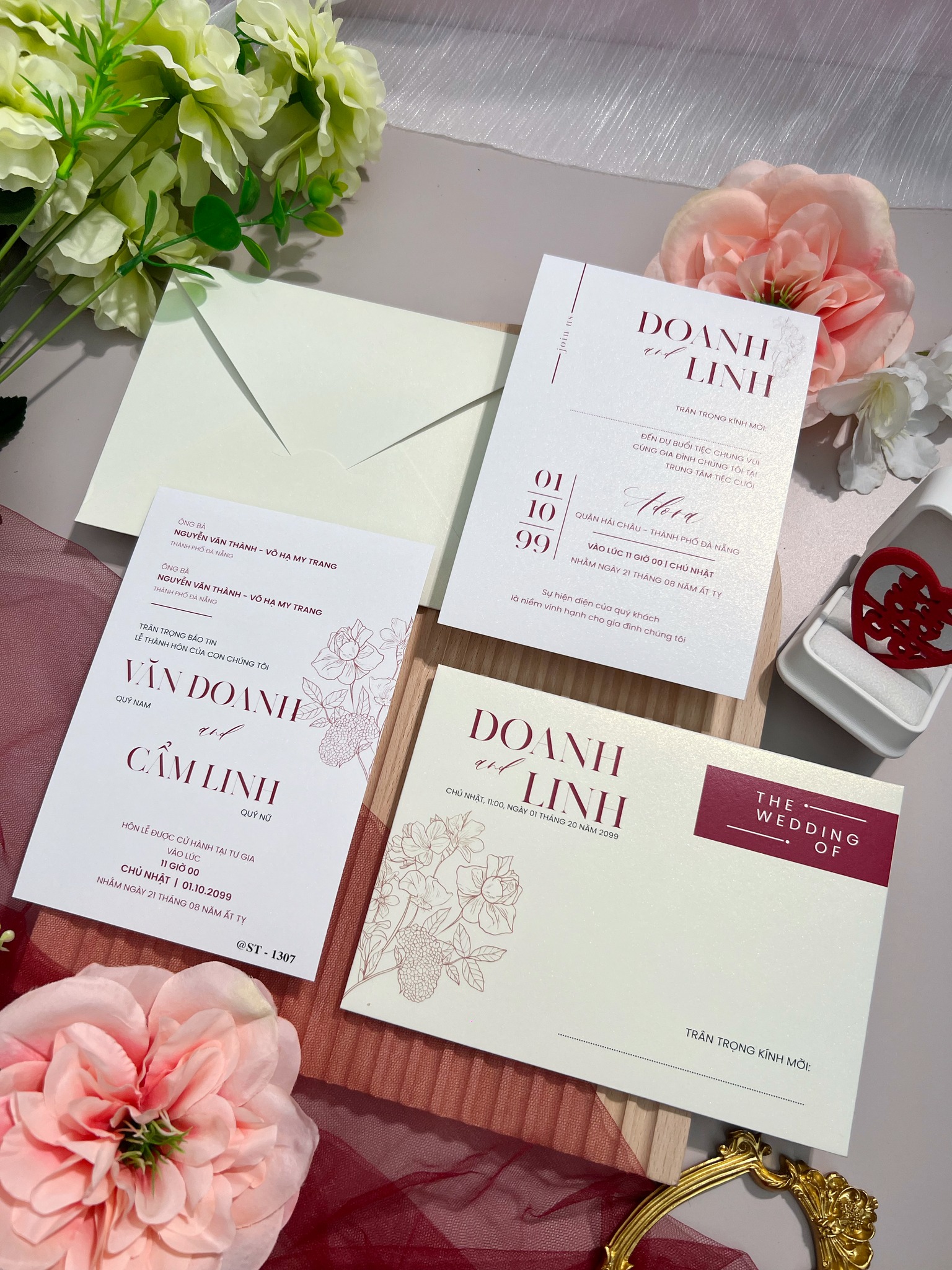 * Đặt 300 thiệp: Tặng thêm 100 thiệp nhóm họ và website cưới mời online, đảm bảo sự trọn vẹn và chu đáo cho ngày trọng đại.