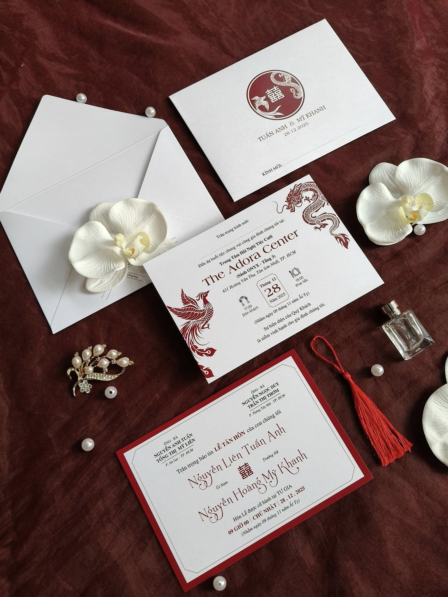 - Thiệp cưới Song Hỷ Long Phụng là lựa chọn hoàn hảo cho những cặp đôi yêu thích sự kết hợp giữa văn hóa truyền thống và vẻ đẹp hiện đại, với tông màu đỏ chủ đạo cùng họa tiết tinh xảo, mang ý nghĩa về một hôn nhân thịnh vượng và hạnh phúc.