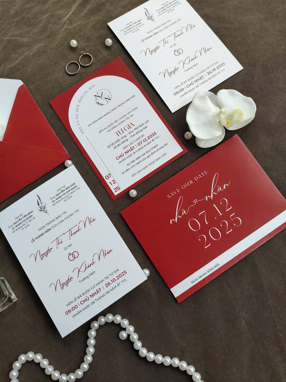 - THIỆP CƯỚI FESTIVE REFINEMENT – SẮC ĐỎ ĐAM MÊ CHO NGÀY HẠNH PHÚC VĨNH CỬU Mẫu thiệp cưới Festive Refinement của Thiệp Cưới Đồng Xoài là sự lựa chọn hoàn hảo cho các cặp đôi tìm kiếm vẻ đẹp sang trọng, hiện đại pha lẫn nét truyền thống. Với tông màu đỏ rực rỡ và trắng tinh khôi, thiệp mang đến sự may mắn, nồng ấm và một lời mời đầy ấn tượng.