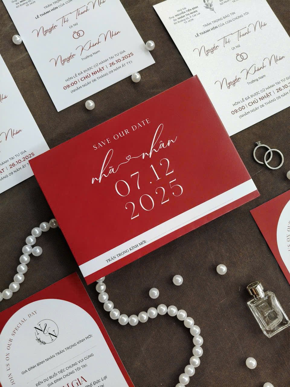 Ngày trọng đại của cuộc đời xứng đáng được bắt đầu bằng một lời mời tinh tế, thể hiện trọn vẹn tình yêu và sự chuẩn bị chu đáo. Thiệp Cưới Đồng Xoài tự hào giới thiệu mẫu Festive Refinement – một thiết kế thiệp cưới không chỉ đẹp mắt mà còn truyền tải thông điệp một cách rõ ràng và đầy cảm xúc.