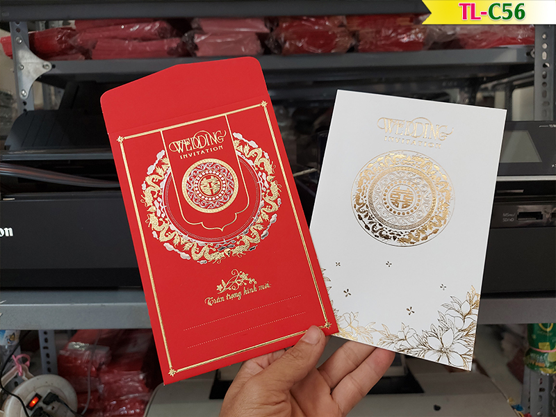 Mẫu phôi thiệp truyền thống đỏ nhung mã TL-C56 Kiểu túi đứng Chữ nhật lớn Bao thư giấy đỏ nhung ép kim, ruột giấy fort ÉP KIM 1 MẶT
