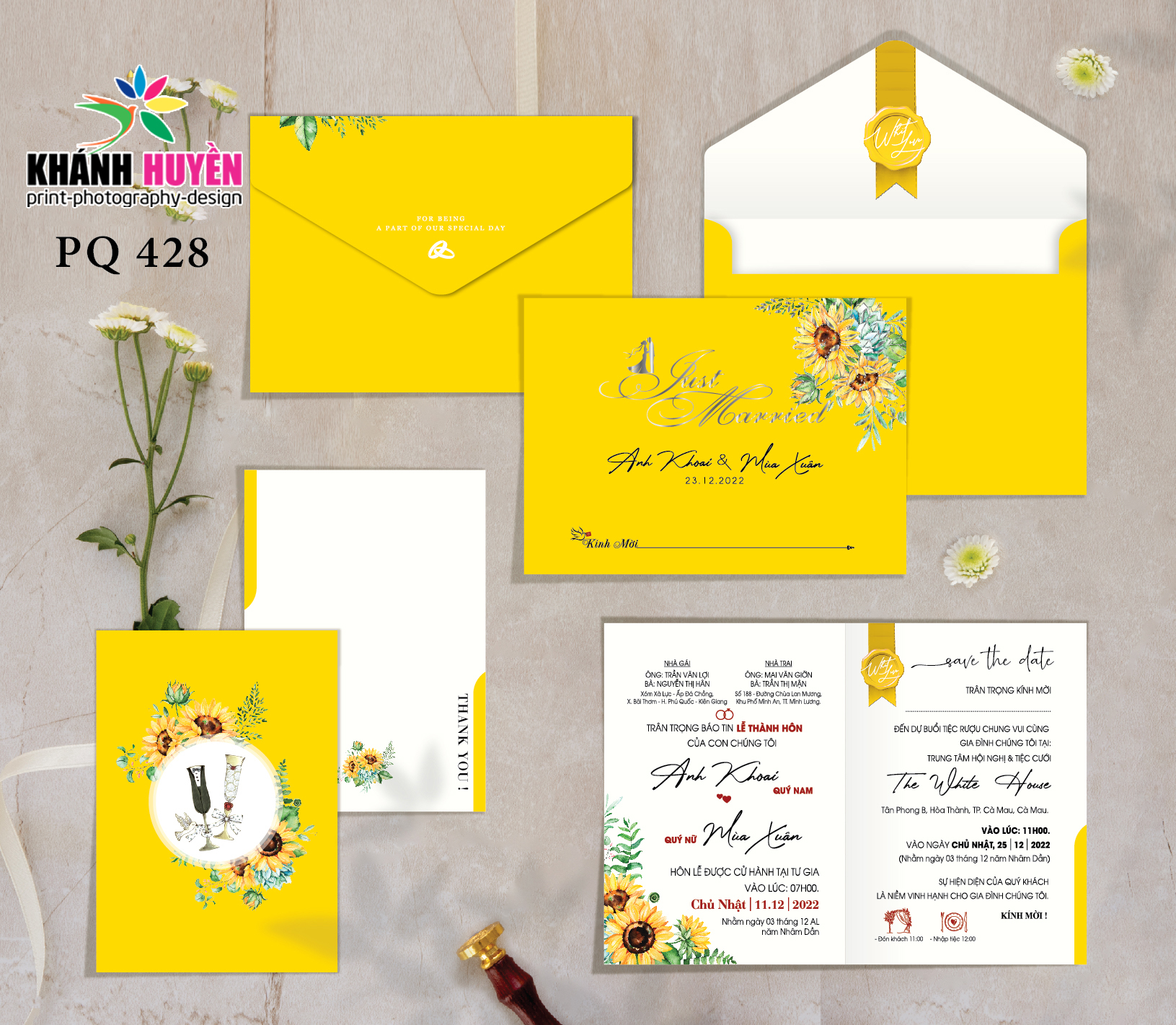 Thiệp Cưới Đồng Xoài ( Xưởng In Khánh Huyền) thiết kế và in theo từng đơn hàng Dâu Rể đặt, Thiệp in hoàn thiện gồm bao thư + ruột + phụ kiện nếu có đã in, dán thành phẩm.