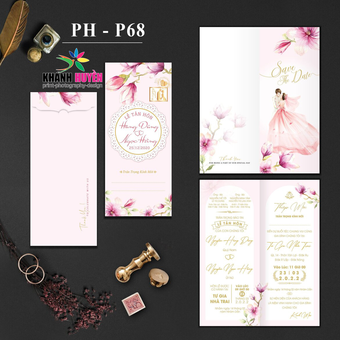 Thiệp Cưới Đồng Xoài ( Xưởng In Khánh Huyền) thiết kế và in theo từng đơn hàng Dâu Rể đặt, Thiệp in hoàn thiện gồm bao thư + ruột + phụ kiện nếu có đã in, dán thành phẩm.