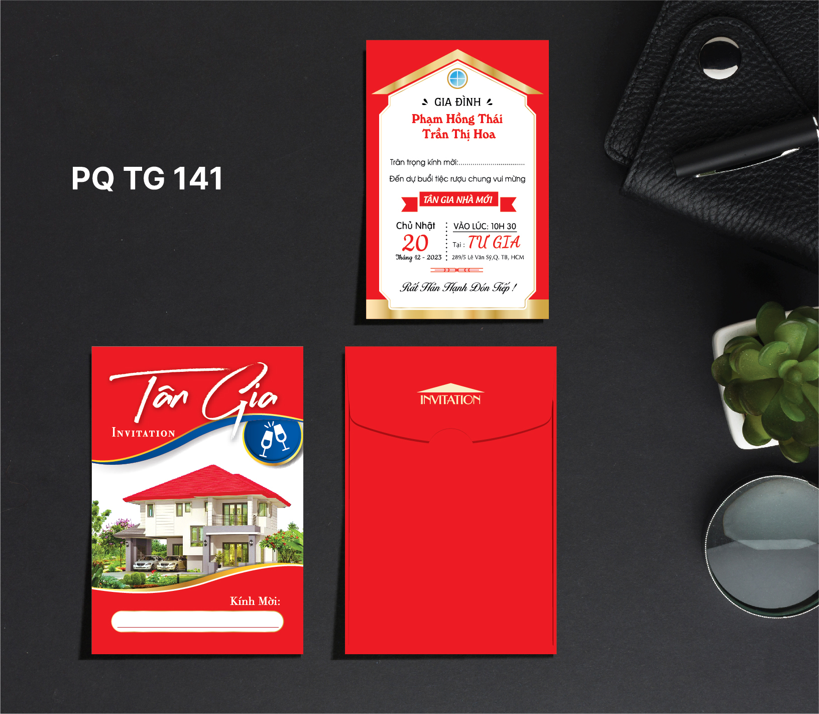 - Mẫu phôi thiệp mời tân gia đỏ offset nhà thái, màu đỏ, xanh dương, Gỗ Kích thước kiểu đứng 10.5 x16cm chất liệu: Giấy kem gân mỹ thuật Bao thư đã dán sẵn, ruột 1 tờ in offset