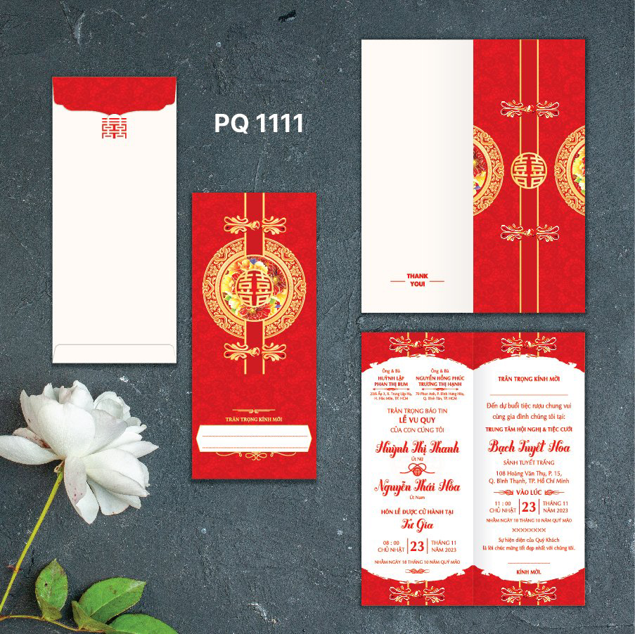 - Thiệp Cưới Đồng Xoài ( Xưởng In Khánh Huyền) thiết kế và in theo từng đơn hàng Dâu Rể đặt, Thiệp in hoàn thiện gồm bao thư + ruột + phụ kiện nếu có đã in, dán thành phẩm. Công nghệ in KTS in trên máy in nhanh công nghiệp hiệu Konica/ Ricoh mực laser - Tặng 100 thiệp nhóm họ khi in từ 300 thiệp trở lên - Nhận trang trí gia tiên - Boook thợ chụp tiệc giảm trực tiếp 200k trên tổng dịch vụ. - Liên hệ Hotline, Zalo 0389 585 590 - 0559 41 99 79 để được tư vấn trực tiếp. Xem trọn bộ thiệp giá rẻ 2024 Tại Đây