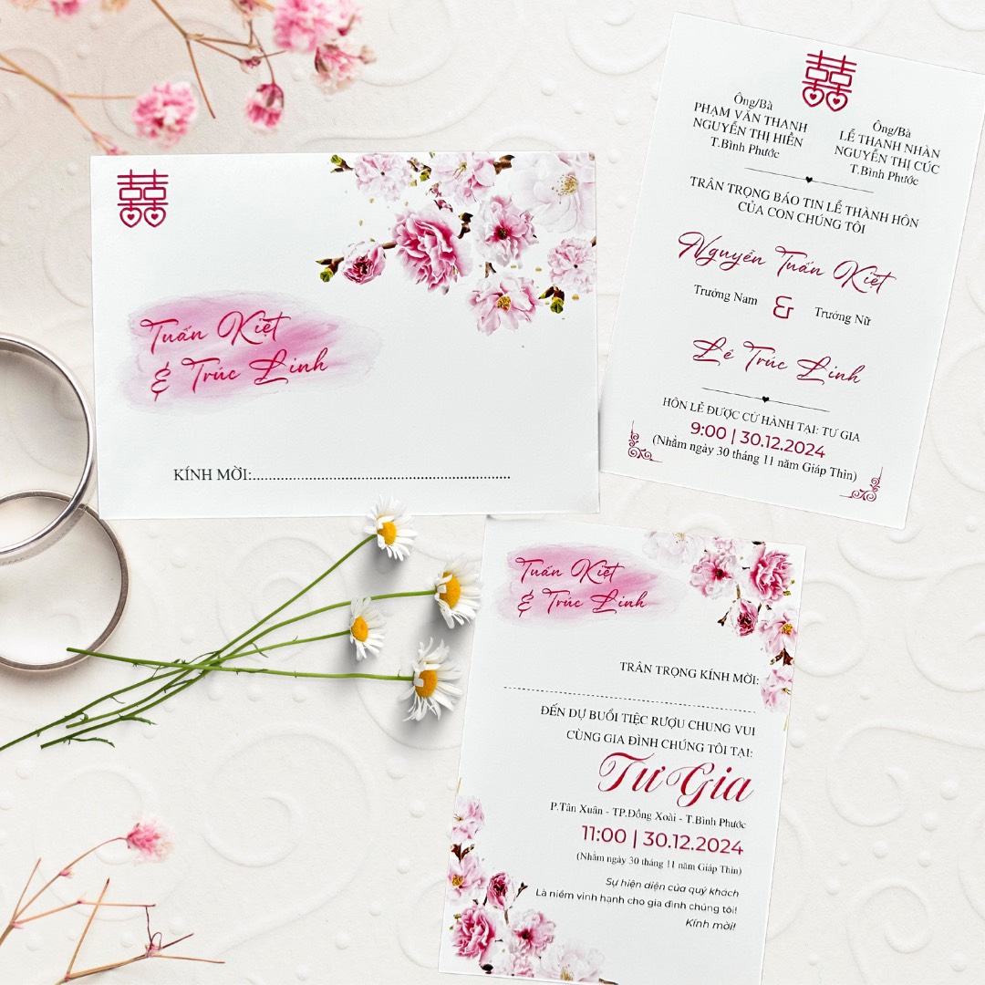 - Thiệp Cưới Romantic Blossom – Nơi Tình Yêu Vụt Nở Với Sắc Hồng Tinh Khôi